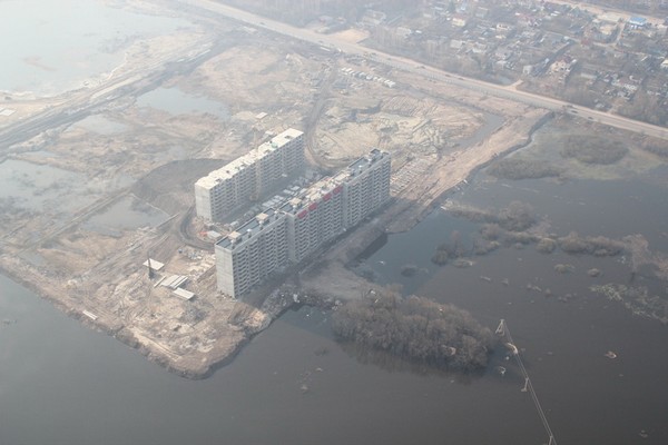 Таковой можно считать продолжающееся строительство в пойме Десны в районе улицы Флотской. Уничтожение живописных мест неспособны оказались остановить ни весенний паводок, превративший площадку, на которой возвели многоэтажные монстры, в островок посреди разлившейся реки, ни беспрецедентное дальневосточное наводнение, заставившее многих радикально пересмотреть практику застройки мест, потенциально подверженных подобным паводковым катаклизмам. Но для руководителей нашего областного центра и, в первую очередь, нашего региона, так как "город" без согласования с "областью" не принимает ни одного более-менее значимого решения, ничто не указ и ничто не наука. Ещё бы, ведь варварский проект, за который взялась фирма г-на Гавриша, был одобрен в областной администрации самим губернатором. Ему там спели коллективную сладкую песнь про то, каким замечательным будет построенный прямо на отменных заливных лугах развлекательный комплекс "Саяны Парк", жилой микрорайон. В подпевающих — не только бывший начальник областного управления имущественных отношений Д. Полещенко, но и его куратор, вице-губернатор А. Касацкий. После того, как застройщики вломились в пойму и черты экологического преступления стали проступать всё отчётливее, последовало не прекращение варварства, а визит в конце июня губернатора, которому снова спели известную песнь, а он благословил дальнейшую застройку. Чтобы смягчить её последствия, высшим должностным лицом области было сказано, что в этих только что погружавшихся в паводковую воду домах будет жильё для сирот. Правильно: для сирот это в самый раз…